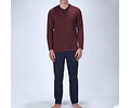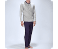 DESCRIPCIÓN DEL PRODUCTO: Conjunto pijama dos piezas, polera cuello con tapeta abotonada. Pantalón largo de algodón.